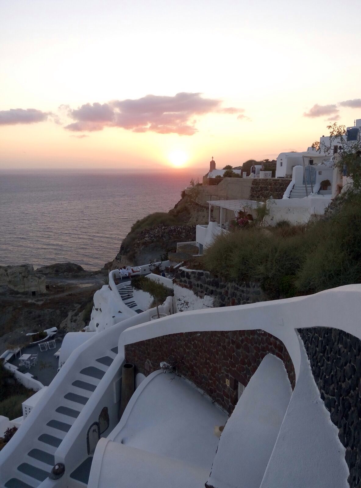 El hotel estaba muy bien situado, también tenia la parada de bus cerca para Oia, tiendas y minimarket. Peeero… la atención no fue la misma que hasta ahora, buena… no podemos decir que mala ni regular ni mucho menos… pero es que hasta aquí había sido increíble el detalle en explicarnos, decirnos cosas que ver, hacer y comer,… este hotel no destacó por esto ni por la máxima atención ni por el máximo cuidado o diseño que en Milos x ejemplo si encontramos, quizás también porque la expectativa iba creciendo, ya que era el hotel mas caro y lo anterior era ya espectacular, la sorpresa fue el salto hacia abajo en general, que ya digo que hasta aquí había ido hacia arriba! No obstante, las vistas geniales, los desayunos una locura… quizás es que Santorini es mas caro.