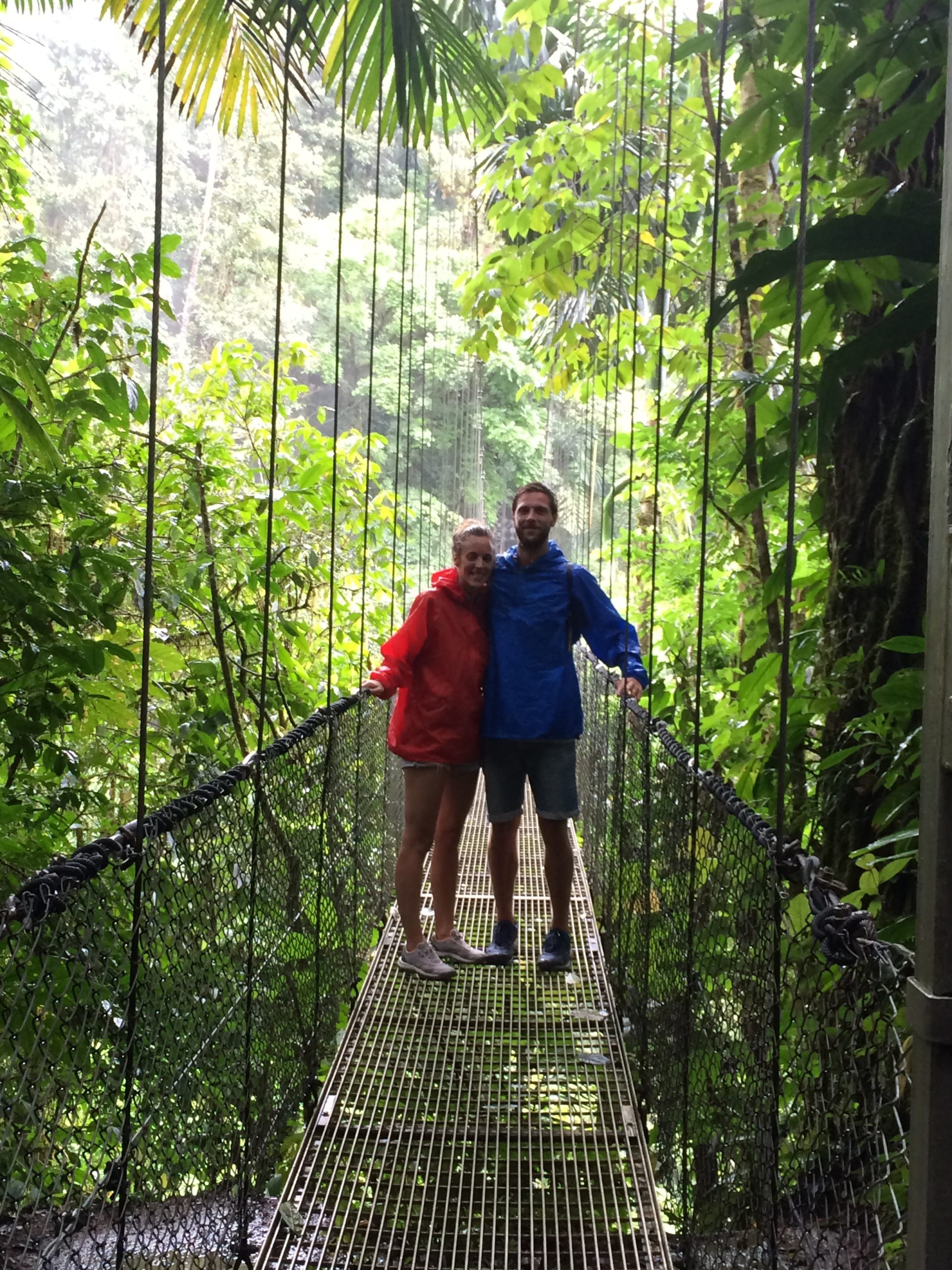 Visitaron Tortuguero (una noche se acercaron a la playa y vieron el desove de las tortugas y como camuflaban los huevos para que los pájaros no se los lleven). En Volcán Arenal pasearon bajo la lluvia por los puentes colgantes (toda una experiencia) y en Monteverde recorrieron el monte nuboso en tirolina! Una experiencia inolvidable.