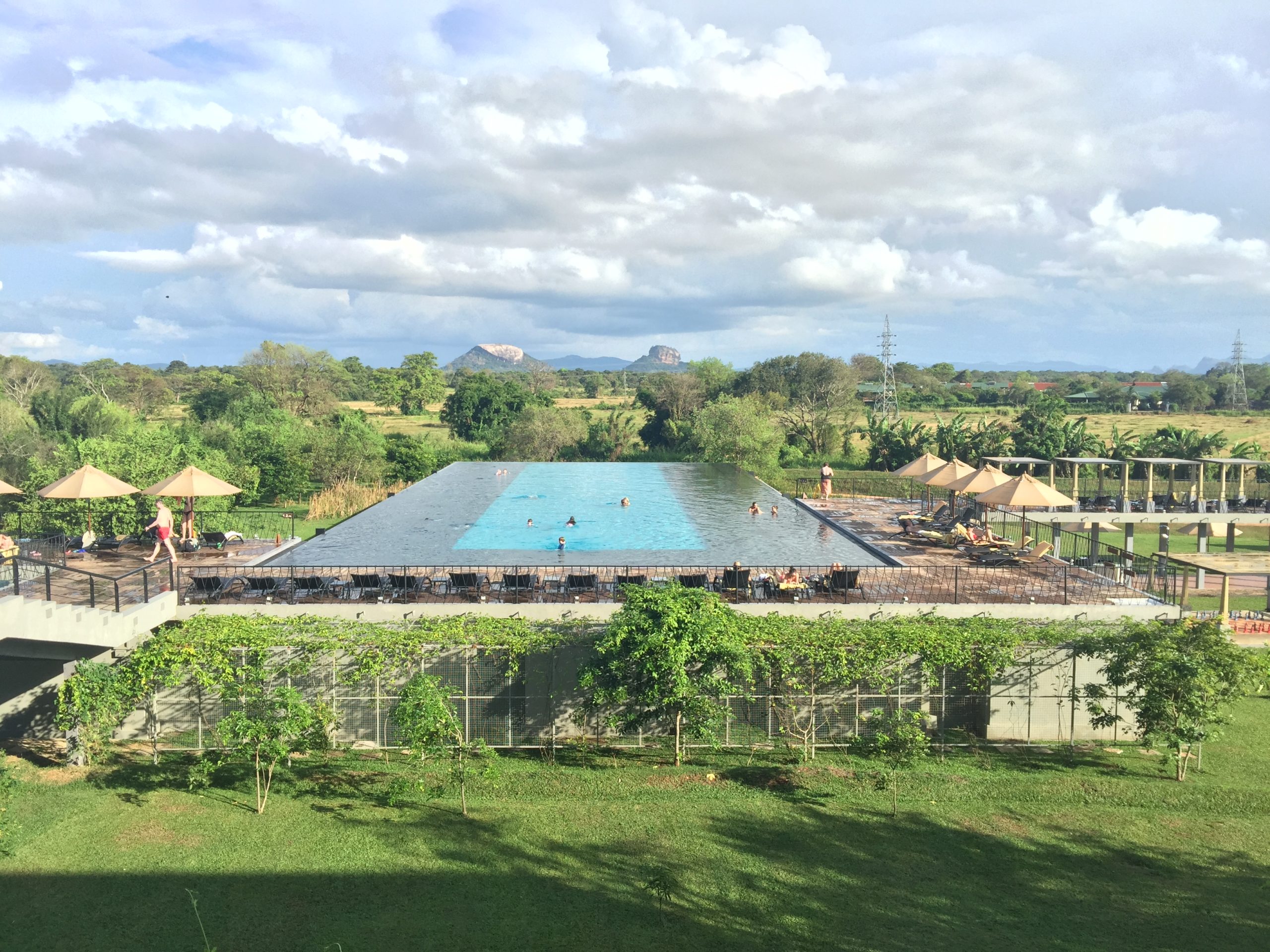Posteriormente nos trasladamos al Aliya Resort en Habarana. Otra maravilla. Es un complejo muy nuevo, con unas habitaciones enormes y preciosas, y una infinity pool con vistas a la roca de Sigiriya que quita el hipo. La verdad es que en el país es posible acceder a alojamientos de lujo sin que se dispare el presupuesto.