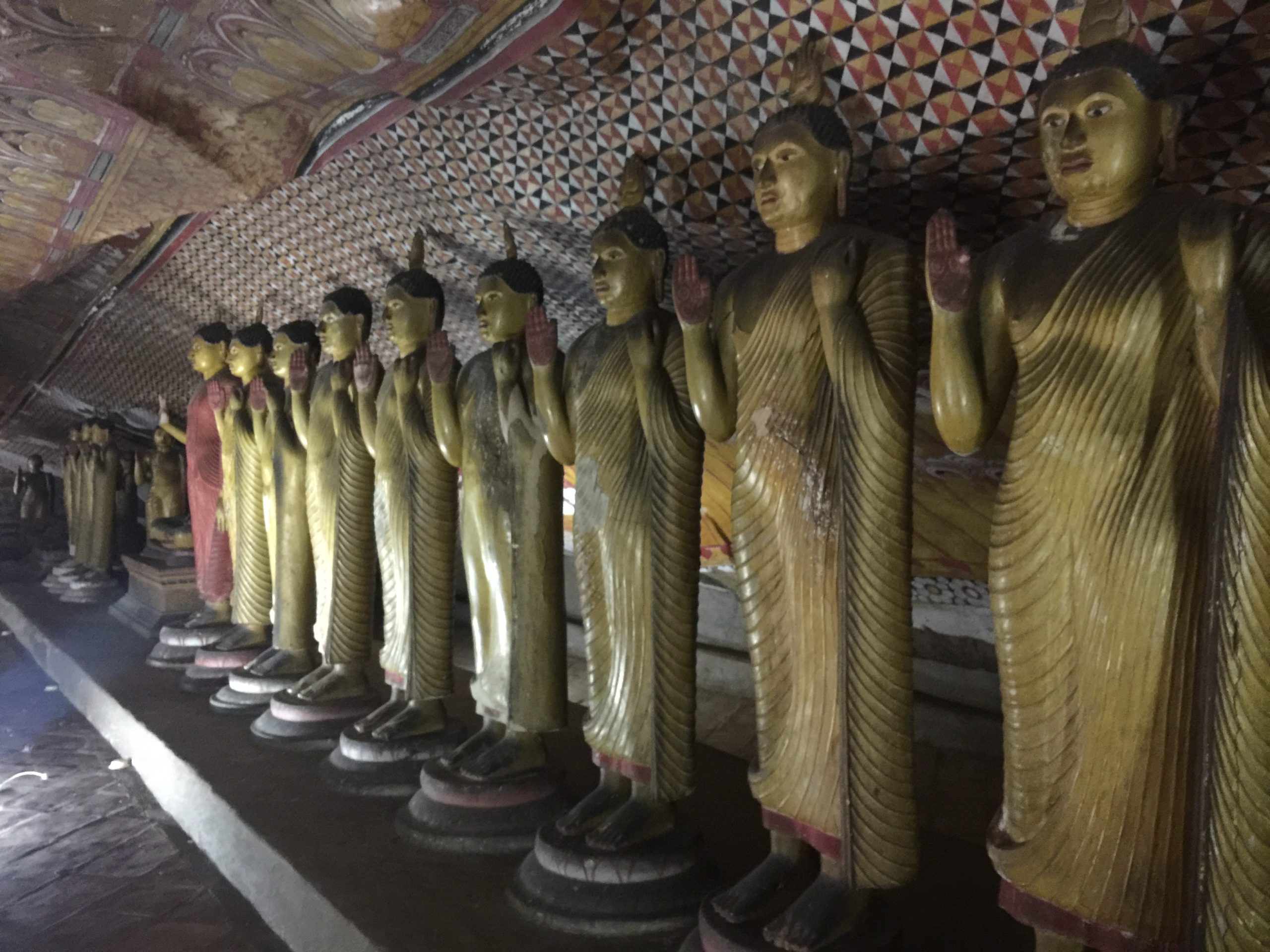 Dambulla: Para seguir con la paliza, inmediatamente después fuimos hacia Dambulla, donde hay que subir a la cima de una montaña para acceder a las cinco cuevas del Templo Real de la Roca. Esta visita es imprescindible y por algún motivo que no podemos entender no está en todas las rutas turísticas. Las pinturas y esculturas de las cuevas están perfectamente conservadas y el lugar es realmente precioso, casi para convertirse al budismo allí mismo.