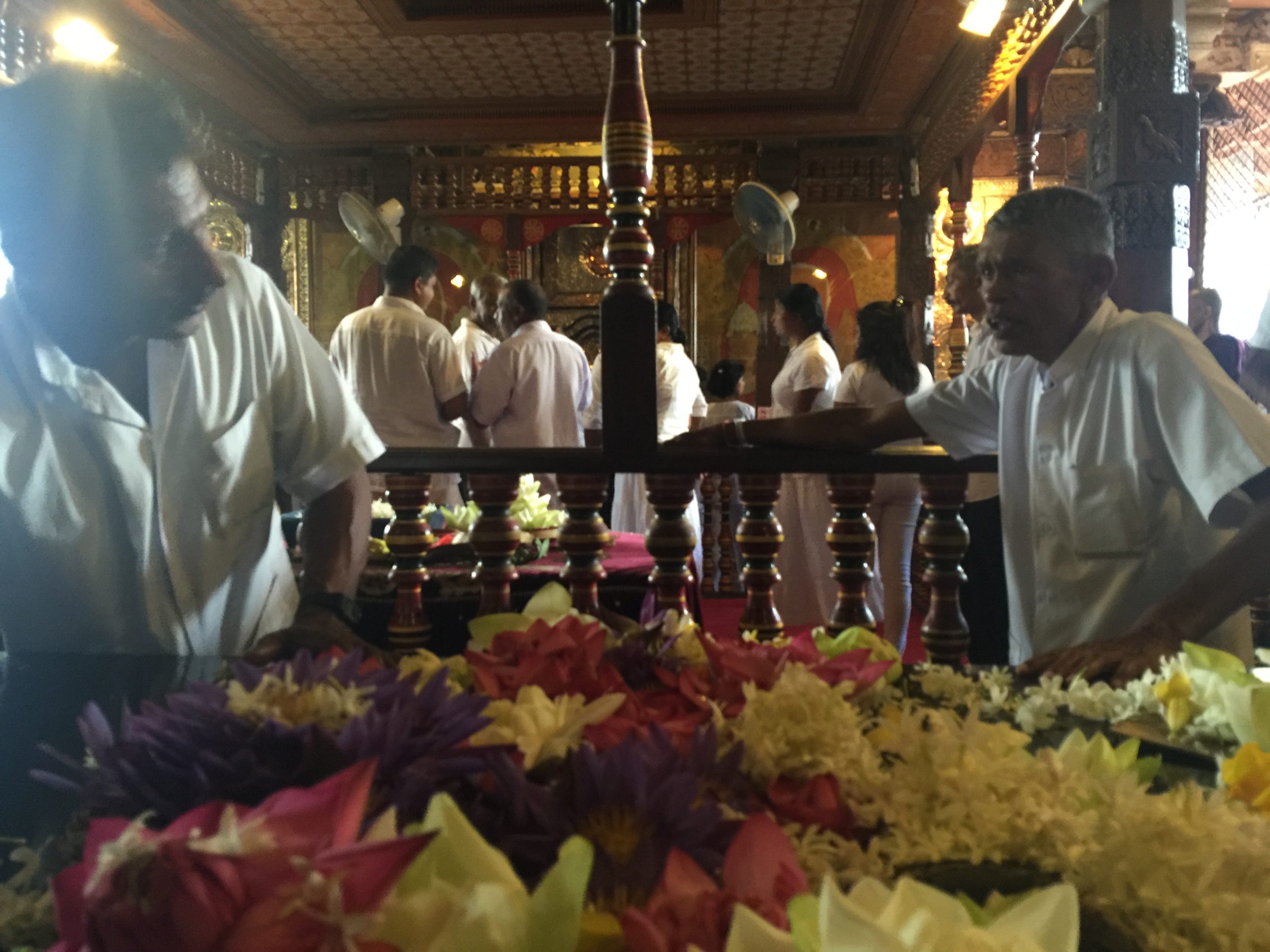 El templo es un lugar bullicioso, con muchos turistas pero aún más fieles. Los cingaleses deben ir al menos una vez en la vida, lo que explica la emoción que se respira en el lugar y la cantidad de ofrendas que se realizan (únicamente los que más aportan tienen acceso al recipiente donde se guarda la reliquia). Las miles de flores que se entregan le dan un toque pintoresco y colorido.