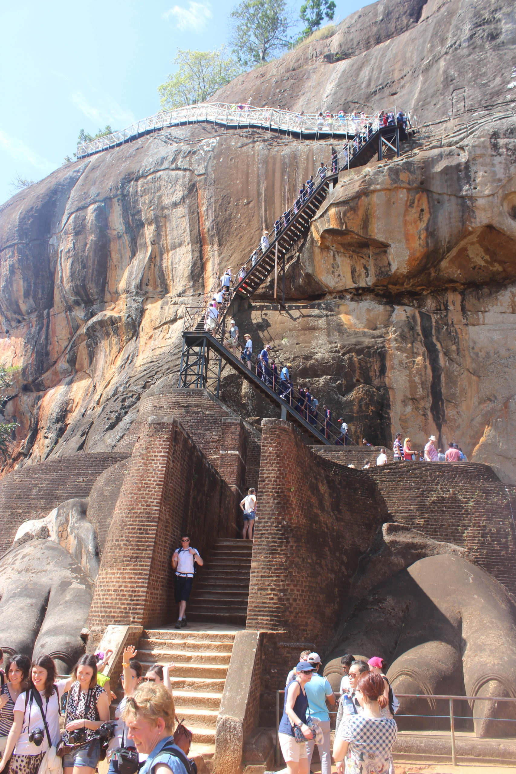 Sigiriya: Al día siguiente a primera hora subimos a la roca de Sigiriya, la que ellos llaman “octava maravilla del mundo”. La subida es dura, especialmente por el calor, pero es un poco ridículo quedarse por el camino, ya que hay muchos turistas y casi todos llegan arriba. Lo mejor del ascenso son unos frescos de lo más eróticos que se conservan en una cueva y las famosas zarpas del león, que hacen pensar en lo espectacular que pudo llegar a ser el lugar en su momento.